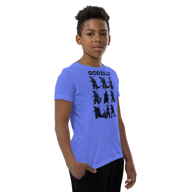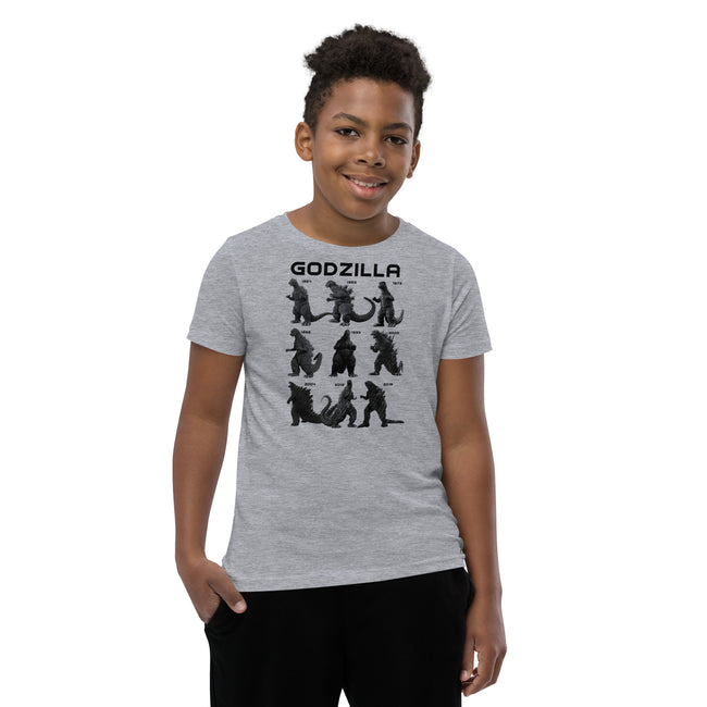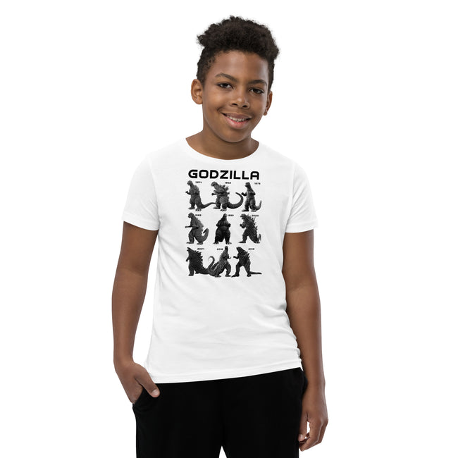 Featuring multiple high-resolution versions of Godzilla, the t-shirt brings to life the titan's awe-inspiring transformations and evolution over the years. Each design captures the power and grandeur of Godzilla in exceptional detail, making this t-shirt a must-own piece for every true kaiju fan.