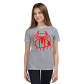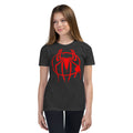 Adorning the front of the t-shirt is the iconic Spider-Man logo, recognized worldwide as a symbol of courage, agility, and responsibility. The emblem's sleek design makes it an essential piece for every Spider-Man fan, from the casual admirer to the die-hard comic book enthusiast.