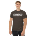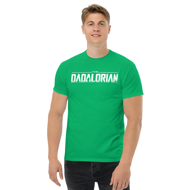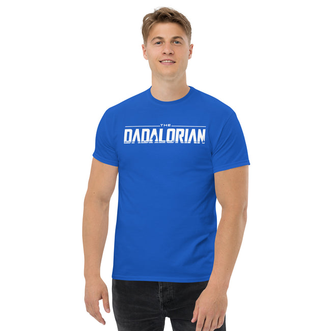 Made from 100% cotton, this shirt offers both comfort and durability, making it perfect for everyday wear. It features a high-quality print of a 'Dadalorian' logo, cleverly fusing the famed Mandalorian with the cherished humor of dad culture. The print's remarkable attention to detail mirrors the gritty, awe-inspiring universe of the beloved series.
