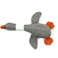 Item: Sound Toy Cartoon GooseDescription: Squeaker is hidden in the body of the wild goose toy; your pet will run around the house carrying it in her mouth, lay with it, and shake it, so it squeaks.Material: Linen; it is hard, strong, and durable.Size: Approx 33cmPackage includes: 1pc squeaky toy