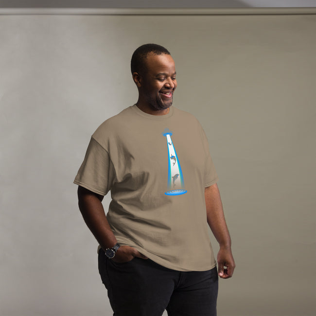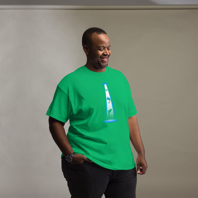 The 100% cotton men's classic tee will help you land a more structured look. It sits nicely, maintains sharp lines around the edges, and goes perfectly with layered streetwear outfits. Plus, it's extra trendy now!